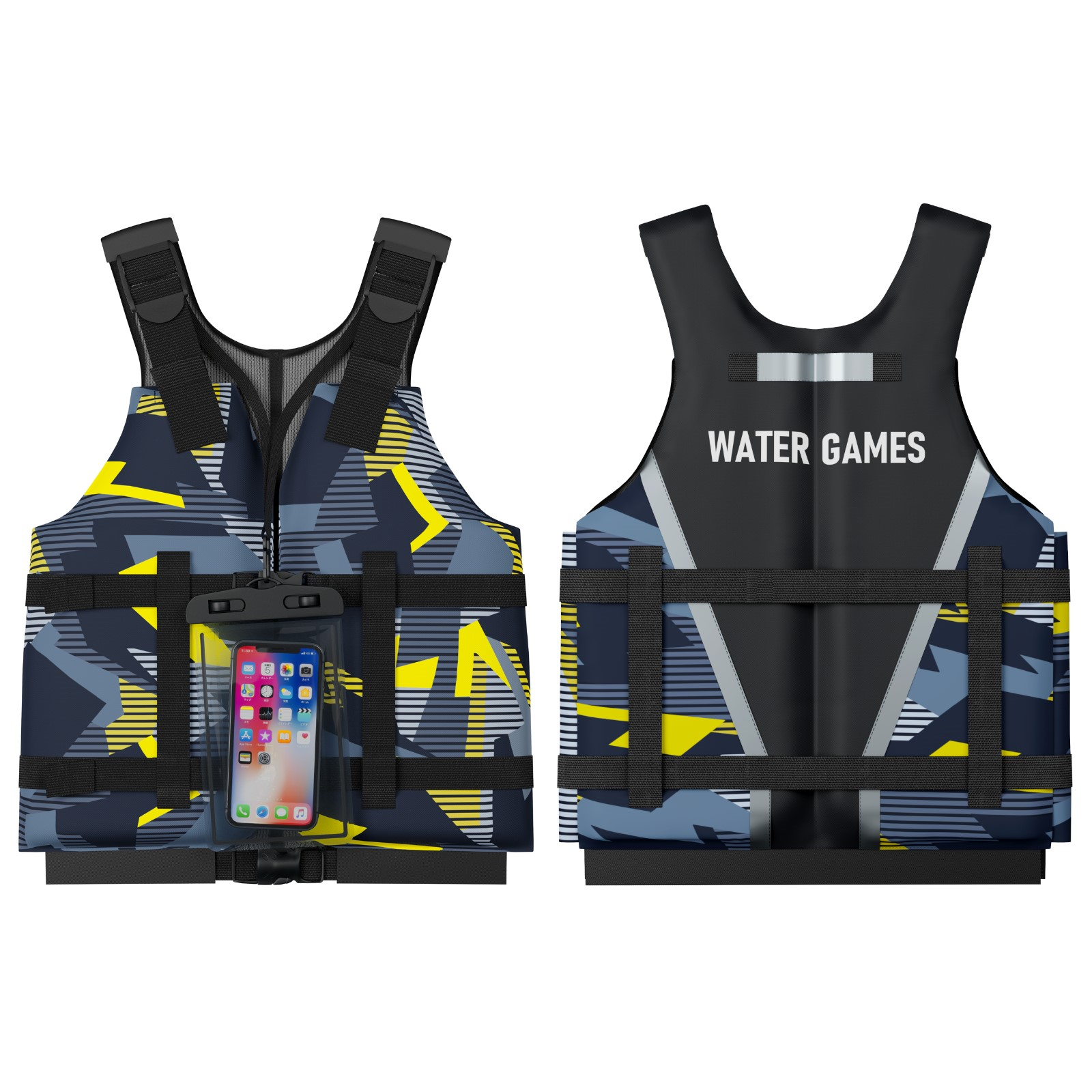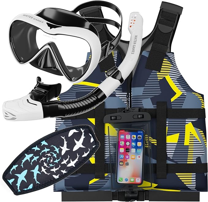 WATER GAMES シュノーケル・マスク・ライフベスト3点セット 防水スマホケース マスクストラップカバー付き